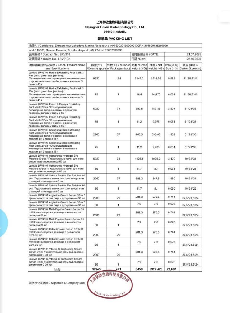 Packing List (пакинг-лист)