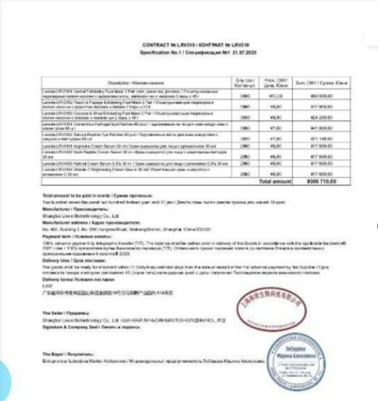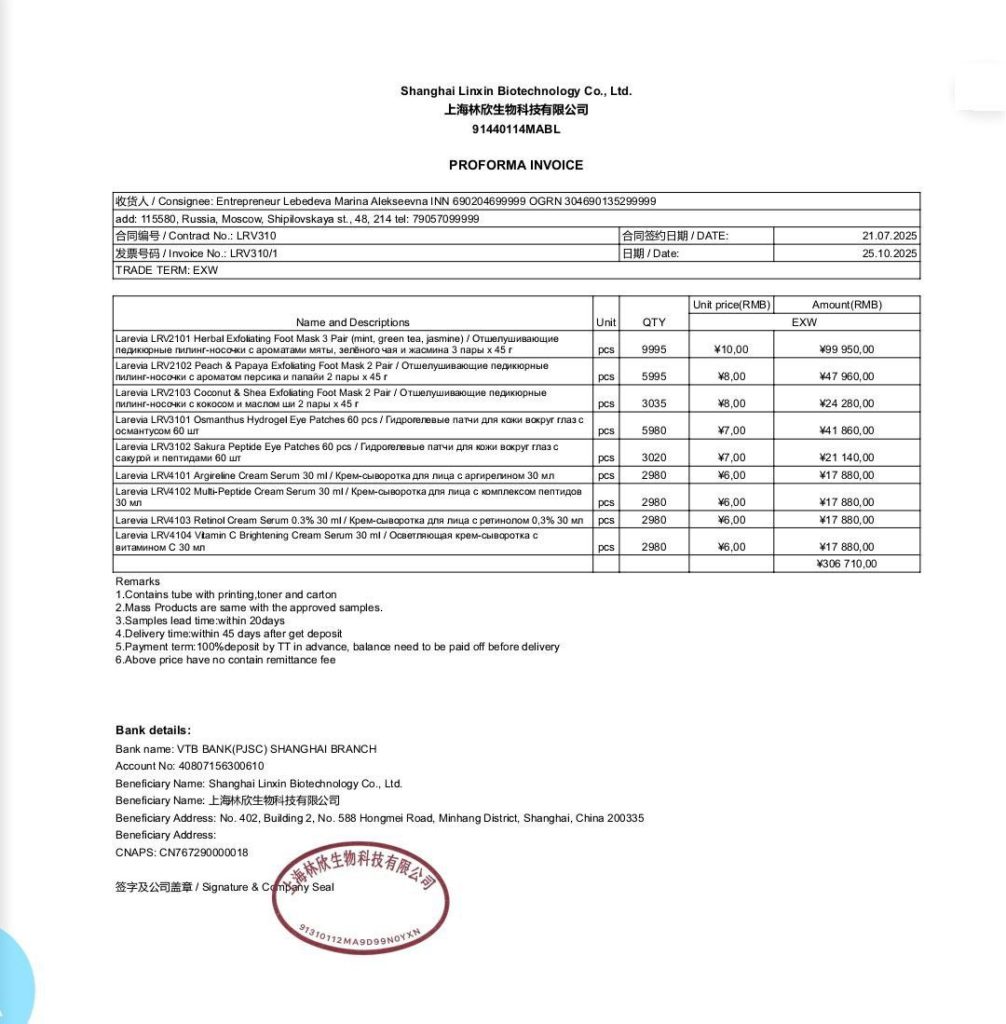 Для оформления документов требуется подробная информация о товаре.